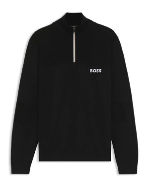Elevate your game in any weather with the BOSS K_Hydro Quarter Zip Sweater. Engineered for the modern golfer, this piece features a water-repellent finish to shield you from light showers, while the premium stretch-cotton blend ensures complete freedom of movement through every swing. A stand-up collar and signature BOSS branding provide a sharp, professional look from the first tee to the clubhouse.