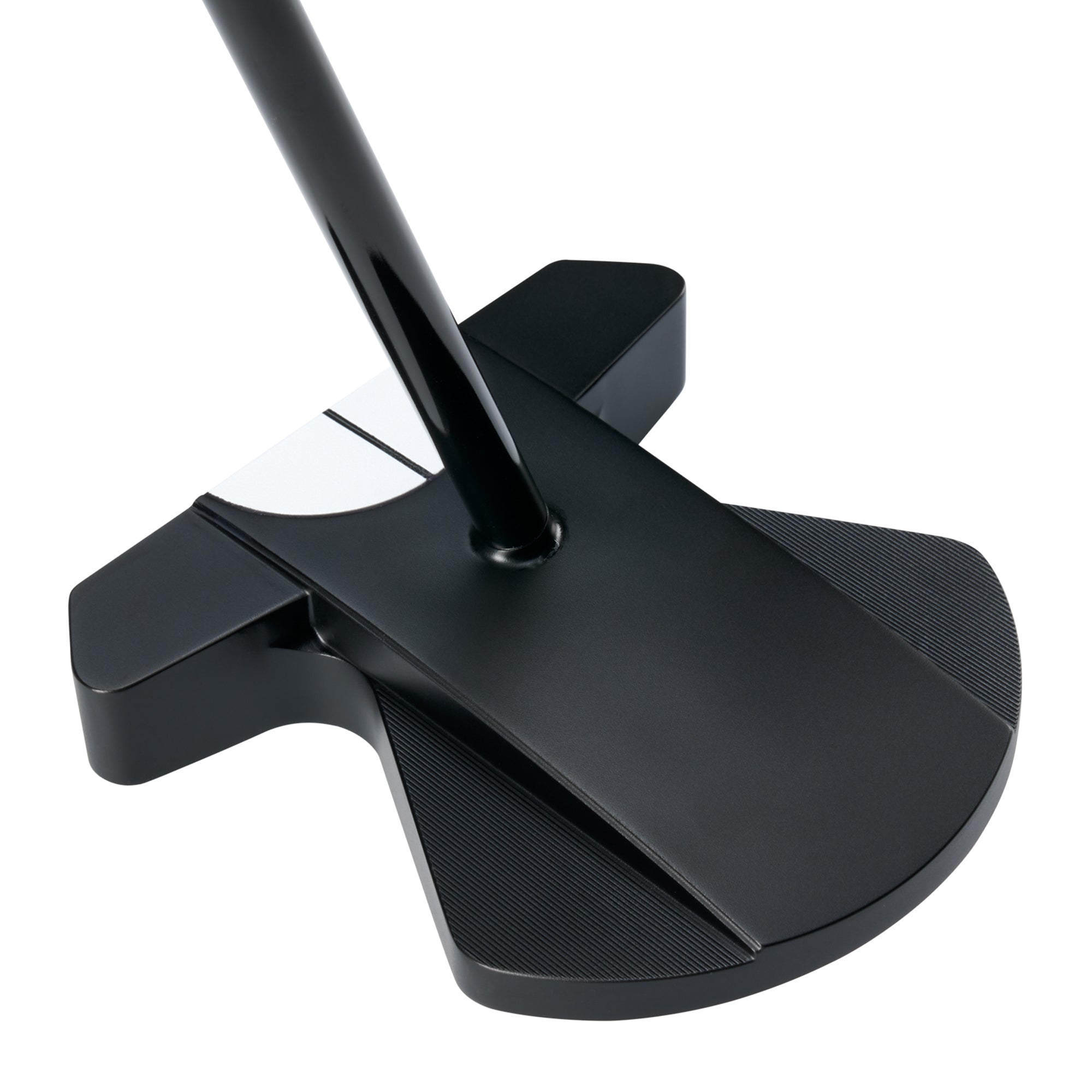 This design centers the shaft just underneath the cg plane of the putter. This results in putters that rest with the toe up, opposite of a traditional putter with toe hang. This design promotes a square face throughout the stroke