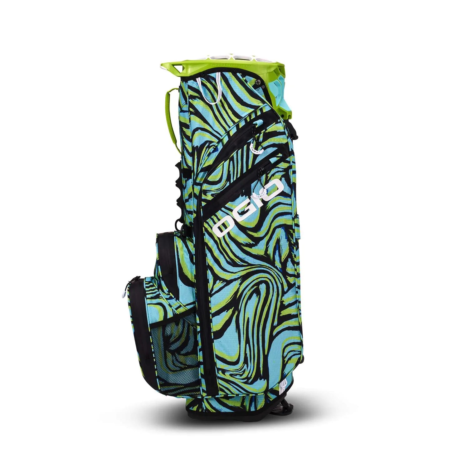 The Ogio All Elements full waterproof Hybrid stand bag remains in the line for 2024 with matching bold and daring colours to the Silencer cart bag. The ALL ELEMENTS Stand bag features waterproof fabric and seam sealed throughout with a premium waterproof valuables pocket to keep all of your electronics dry. The ultimate water-resistant premium 8-way moulded WOODĒ top stand separates your woods from your irons, not only making it easier to find the club you are looking for, but also protect your woods. With the innovative ball silo pocket, superb storage options, and in a range of bold and striking range of colours, it's the go to bag for 2024.