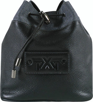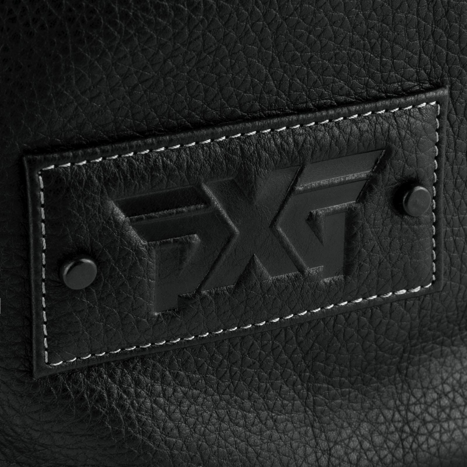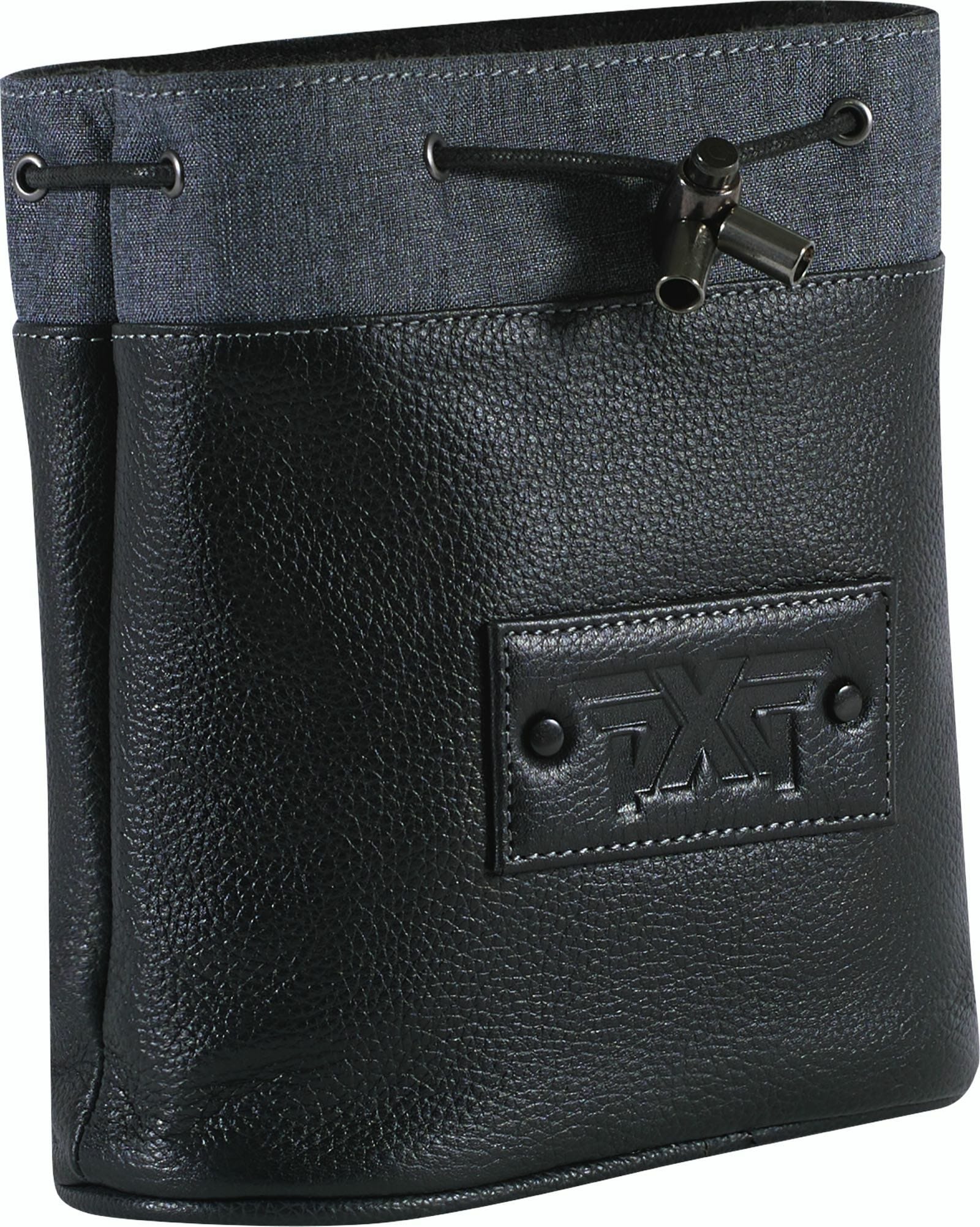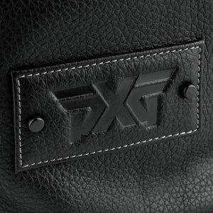 Material: Pebble leather/Polyester Dimensions: 7” x 6.5” x 3” Plush fabric lining 3" x 1.5" leather patch with debossed PXG logo and black metal rivets Draw cord opening
