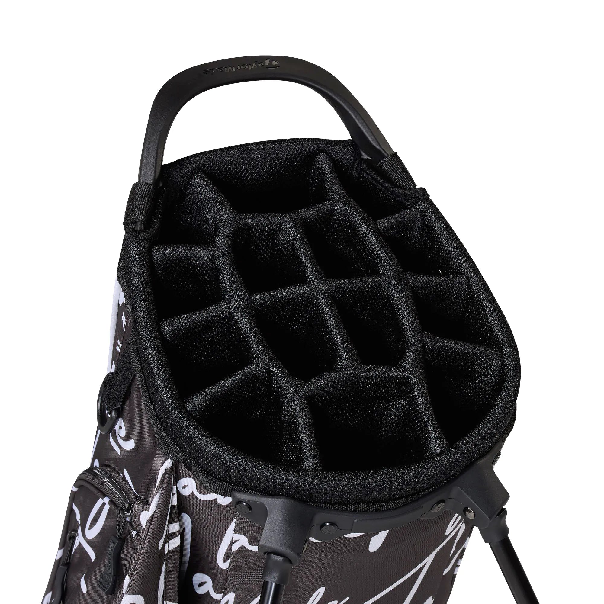 Cart Strap Channel: Securely attaches the bag to a golf cart without hindering pocket accessibility.