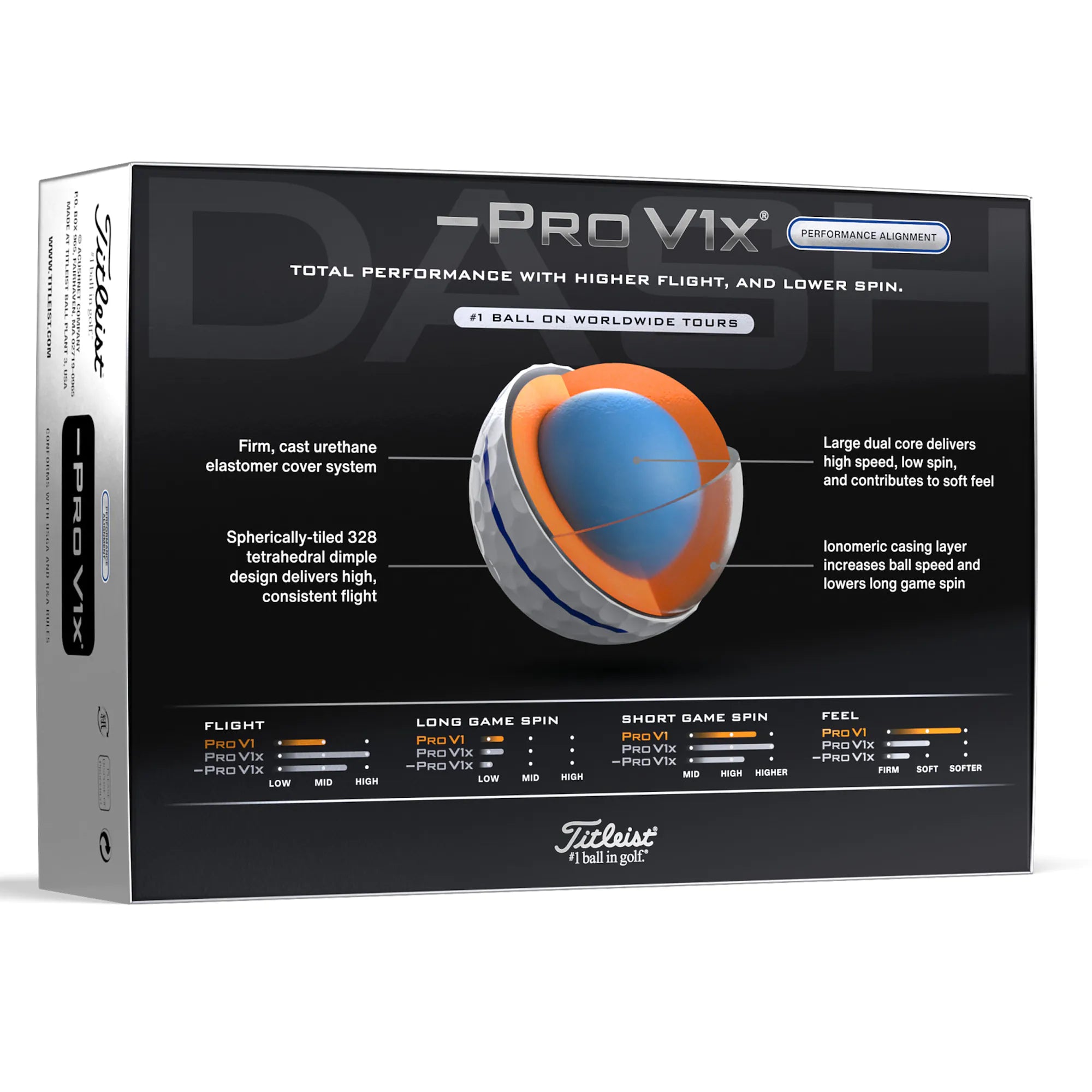 • Lower full swing spin than Pro V1x®